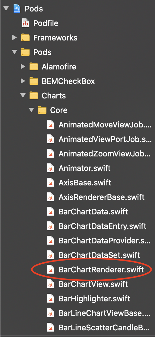 1️⃣프로젝트 파일 하단에 Pods에서 Charts 폴더를 찾아주세요.