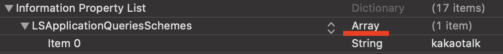 📌LSApplicationQueriesSchemes의 타입을 Array로 변경해주세요
